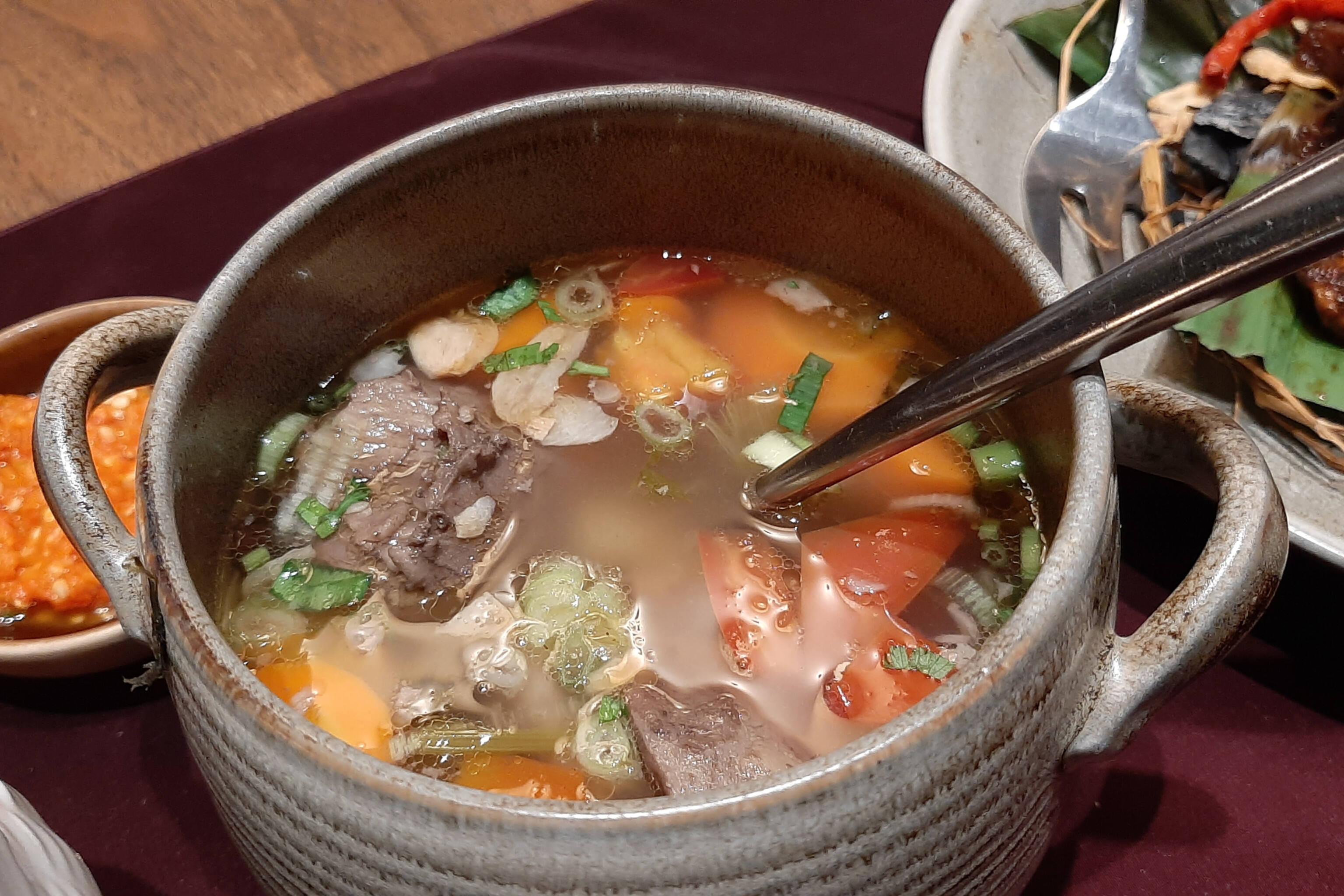 Semangkuk sop domba kacang merah khas Betawi yang light dan segar di Noesaka Restaurant.