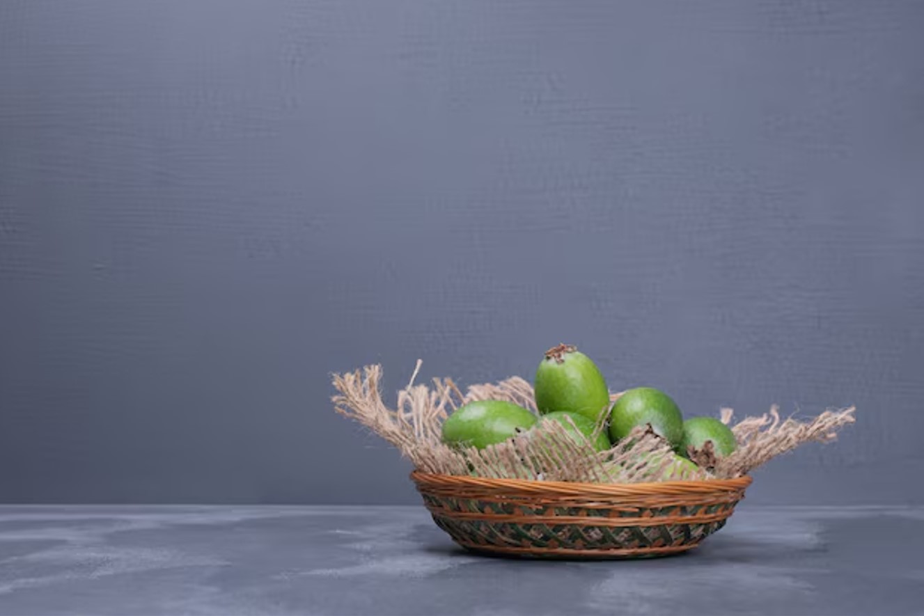 Ilustrasi buah kedondong di wadah rotan.