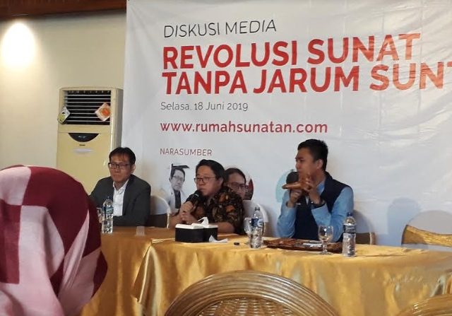 dr. Mahdian Nur Nasution, SpBS, (tengah) menjelaskan informasi seputar sunat. Rieska Virdhani/JawaPos.com/
