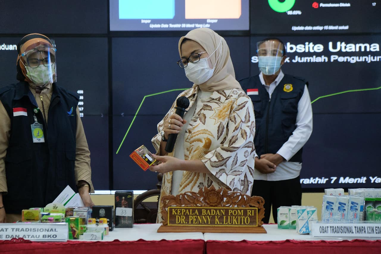 Kepala Badan POM RI, Penny K. Lukito menegaskan, dalam kondisi pandemi Covid-19 terus melakukan operasi-operasi penindakan terutama penjualan obat dan makanan melalui online. Umumnya modus dilakukan dengan sistem kemasan paket yang siap dikirim langsung kepada konsumen.