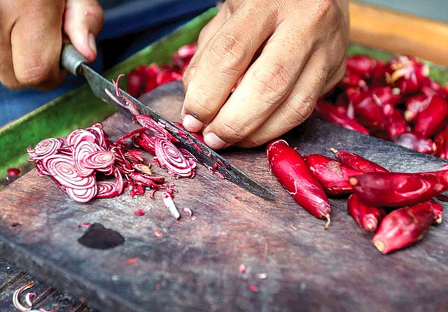 TIPIS: Cara mengonsumsi bawang dayak bisa dipotong tipis sebelum diseduh dengan air panas. Mengiris bawang dayak tidak memberi efek perih pada mata seperti saat mengiris bawang merah.