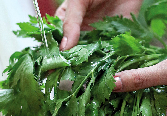 • Masukkan daun dan irisan tangkai seledri secukupnya sesaat sebelum api dimatikan.