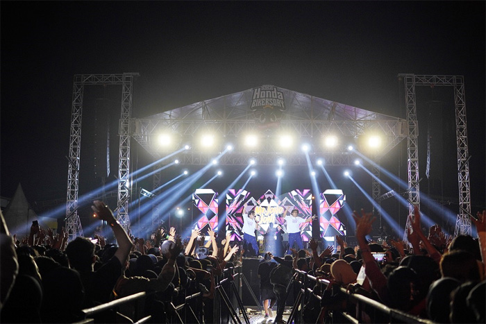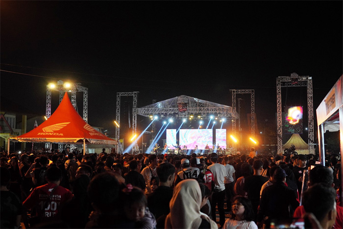 Para bikers Honda Regional Sumatera antusias mengikuti malam puncak hiburan HBD yang diselenggarakan di PKOR Way Halim pada 23 September 2023.