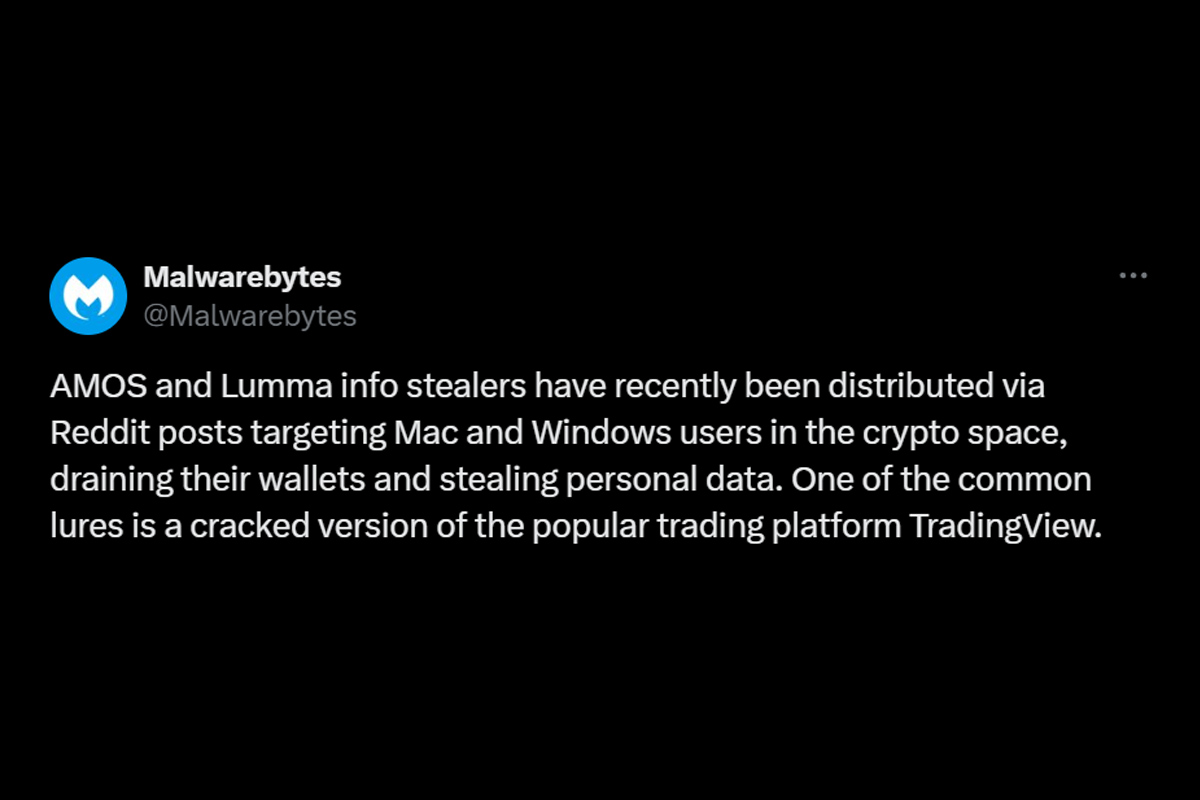 Informasi malware pencuri kripto dan data pengguna yang dibagikan Malwarebytes. (X Malwarebytes)