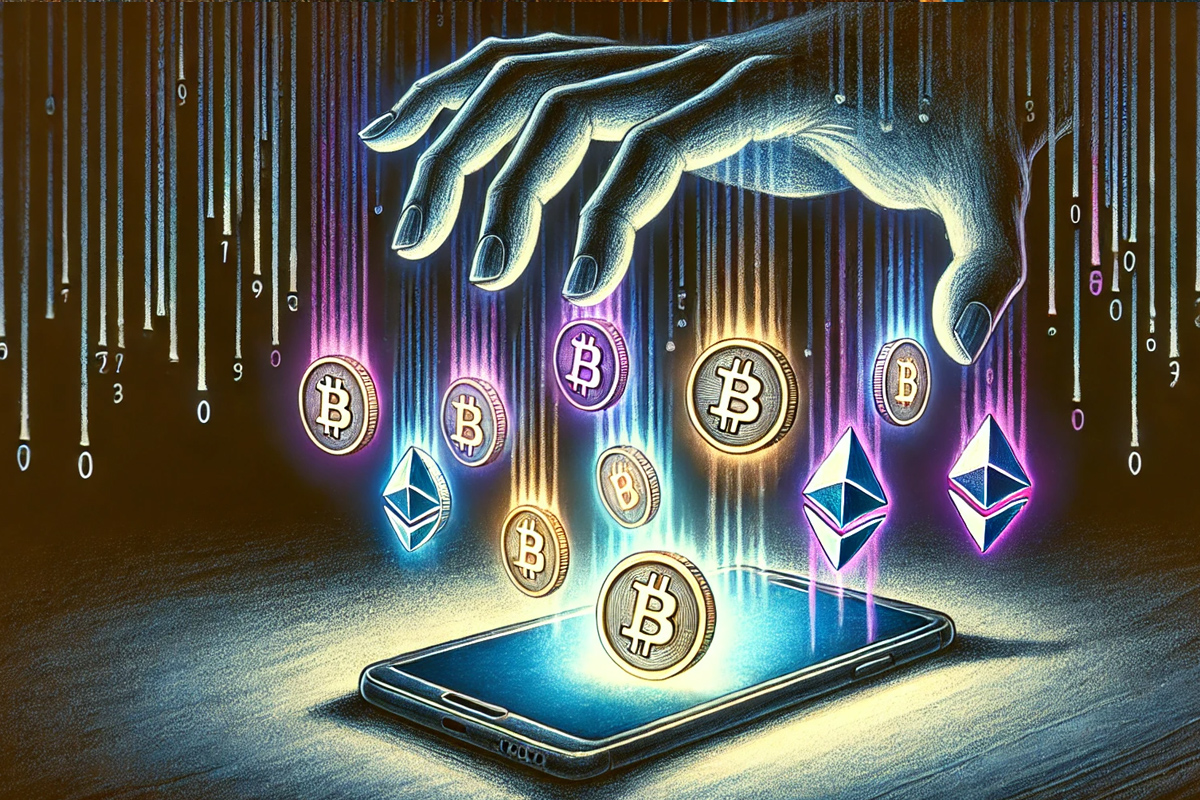 Ilustrasi malware yang bisa mencuri kripto dari ponsel. (Dhimas Ginanjar/Dall E/JawaPos.com)