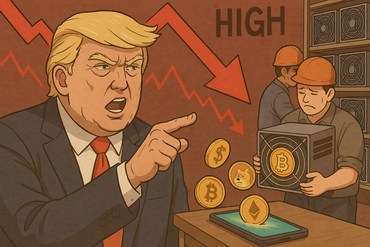 Ilustrasi kebijakan Donald Trump yang membuat perangkat pendukung miner bitcoin menjadi sangat mahal. (Dhimas Ginanjar/Dall E/JawaPos.com)