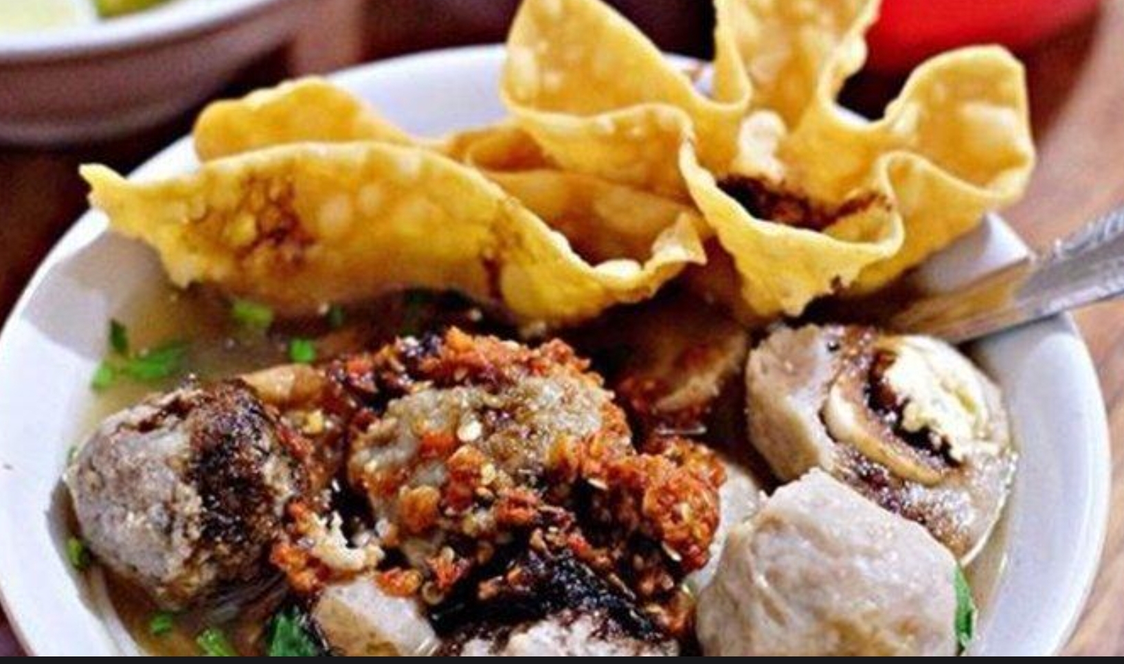 Semangkok bakso dan pangsit goreng bisa dinikmati di Bakso Solo Rindu Malam di Jalan Ciliwung, Surabaya. (Instagram Amazing Indonesia Food)
