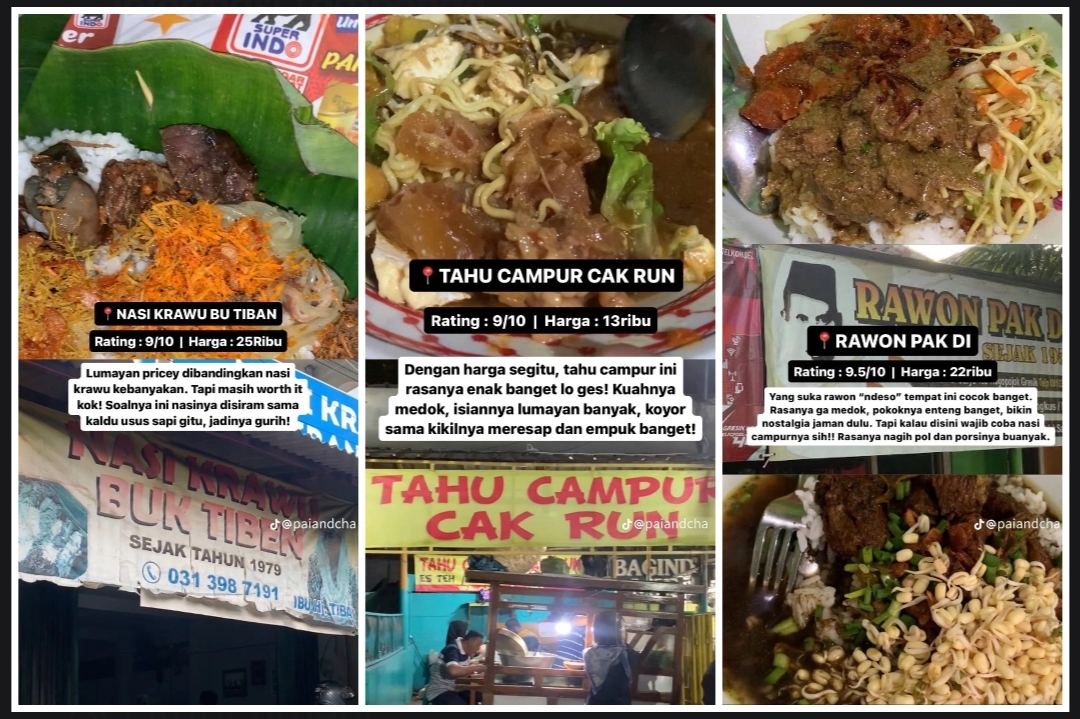 Rekomendasi kuliner di Gresik, dari yang paling legendaris sampai kekinian. (TikTok Paiandchai)