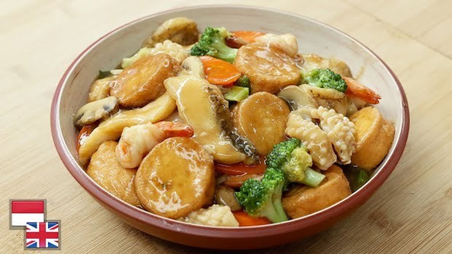 Selain protein hewani, sapo tahu seafood ini juga diperkaya sayuran segar seperti wortel, jamur, dan brokoli yang menambah tekstur sekaligus melengkapi nutrisinya.