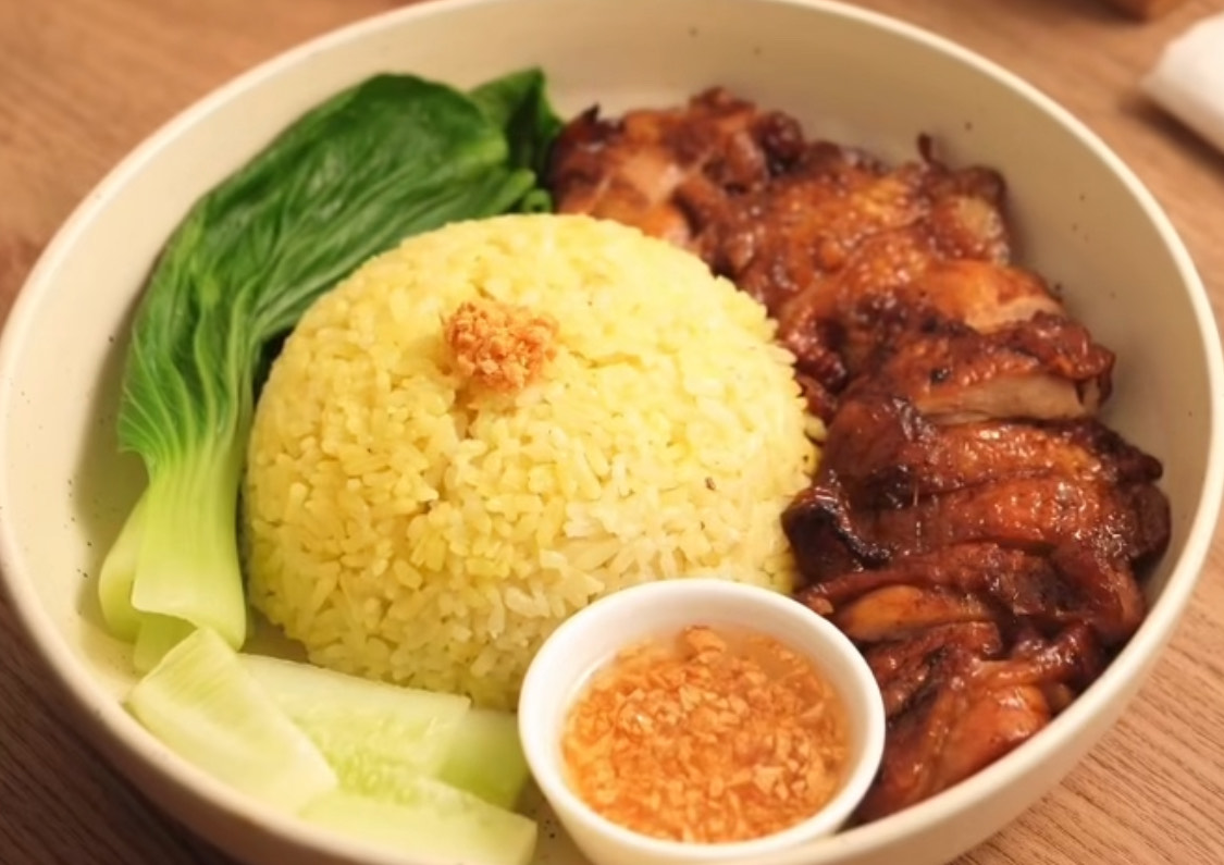 Grilled chicken rice ini memiliki karakter rasa yang ringan namun tetap kaya. Ayamnya terasa gurih-manis dengan aroma jahe yang lembut, sementara nasinya pulen dan harum. Perpaduan ini membuat hidangan terasa mengenyangkan tanpa terasa berat.