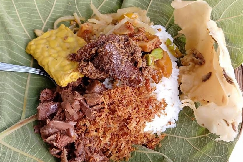 Sajian yang ditawarkan biasanya berupa nasi dengan aneka lauk tradisional, seperti sayur lodeh, oseng, sambal, dan lauk gorengan.