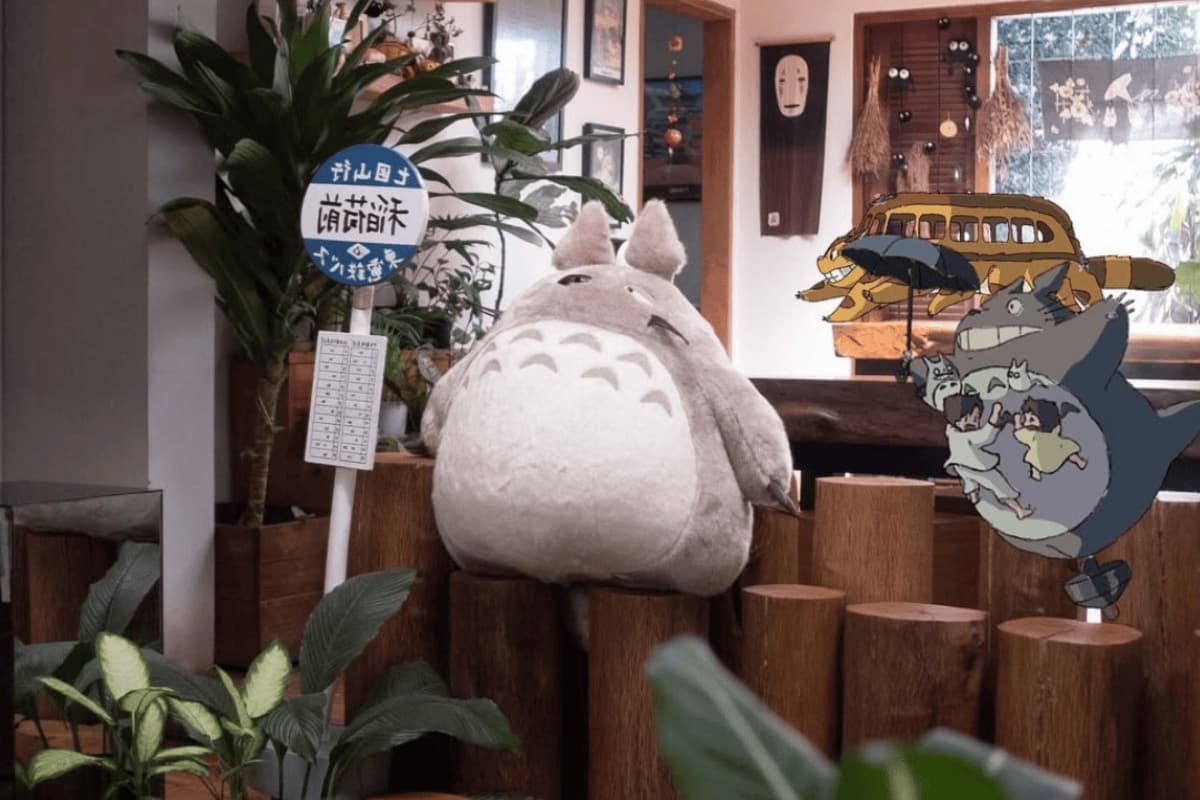 Berdasarkan rekomendasi dari pengguna di laman pergikuliner.com, café satu ini memiliki tempat yang cukup luas dengan dua sisi, ada indoor dan outdoor. Di beberapa sudutnya terdapat ornamen dan lukisan karakter-karakter Ghibli seperti Totoro dan Spirited Away yang membuat suasananya terasa magis dan nyaman.