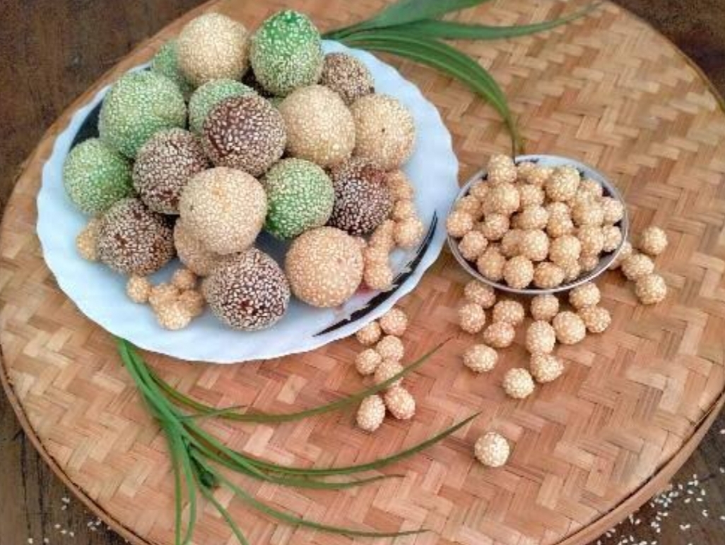 Kalau kamu suka tampilan yang lebih modern dan playful, coba onde-onde semut alias onde-onde pelangi. Bentuknya mungil dengan warna-warni cerah, dan teksturnya lebih renyah dibanding versi klasiknya. Cocok jadi teman nongkrong atau cemilan ringan. Kamu bisa menemukannya di UMKM seperti Sovistore Cakerie di Trowulan.