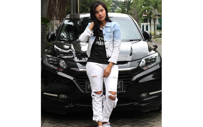 ’’Aku suka banget pakai gaya white ripped jeans, kayaknya dipakai sama sepatu sneakers atau high heels sama cocoknya juga kok,” tutur Yuke.