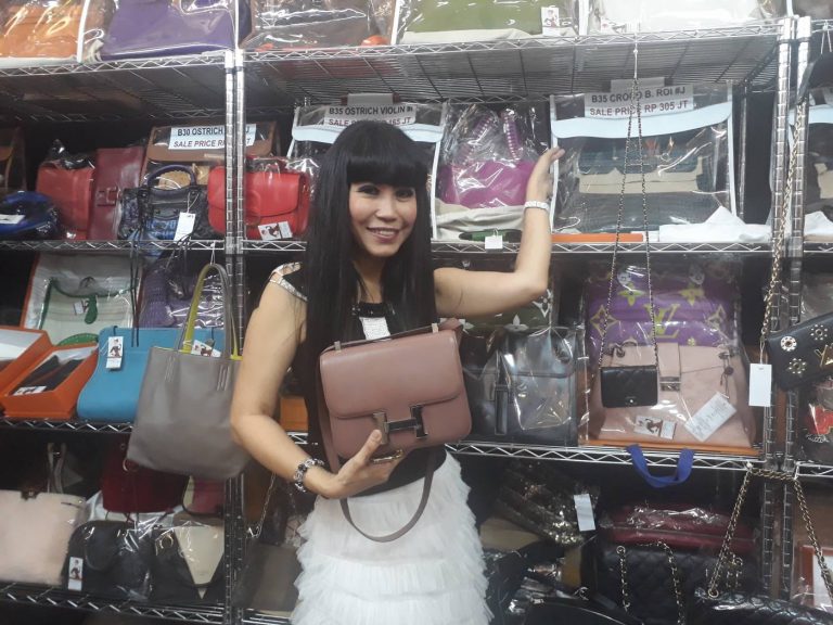 Seller menunjukkan berbagai tas Hermes seharga ratusan juta. (Rieska Virdani/JawaPos.com)