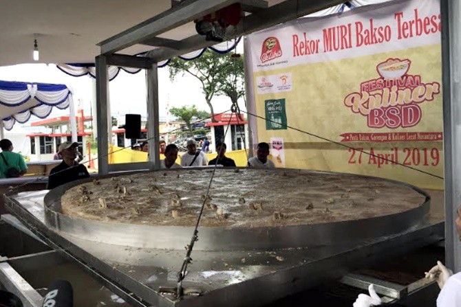 Untuk memanjakan lidah pencinta kuliner, Festival Kuliner BSD menghadirkan bakso gepeng terbesar yakni berukuran 2,9 meter dengan ketebalan 12 cm. Sama seperti baso pada umumnya, baso gepeng raksasa ini diolah dalam wadah besar dengan campuran bumbu-bumbu rahasia.