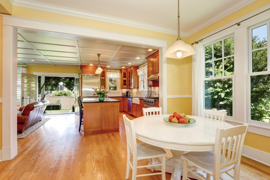 Merah, biru, dan warna ekspresif lainnya baik untuk beberapa kamar tetapi tidak untuk ruang makan. Nuansa berenergi tinggi dan penuh gairah ini dapat menciptakan kegelisahan di ruang makan yang dibuat untuk bersantai dan melepas lelah. Warna Daffodil, lemon pucat, atau bubuk kuning adalah warna yang bagus. Warna tanah lainnya yang bernuansa warna buff, pasir, dan krem juga cocok.
