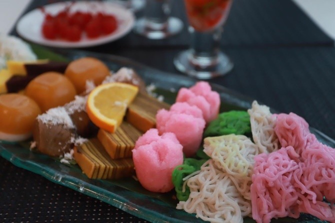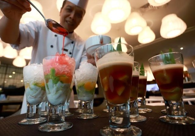 "Kami sajikan 100 menu untuk dessert. Terdiri dari jajanan pasar, pastry, dan kolak. Tiap hari berbeda menu, salah satunya adalah putu mayang. Sangat asli Indonesia," kata Chef Bungkus, salah satu chef di hotel tersebut saat berbincang dengan JawaPos.com, baru-baru ini.