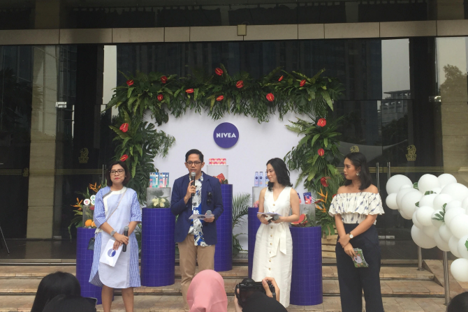 para narasumber saat peluncuran Nivea Lip Balm Pop Ball di Jakarta, Selasa (2/7). (Nurul Adriyana/JawaPos.com)