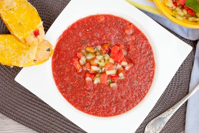 Tak hanya bisa dibuat dalam sup buah dengan rasa yang manis, semangka juga bisa dibuat dengan rasa yang berbeda yakni gurih dan pedas. Seperti tambahkan daun mint akan menambah dimensi kesegaran pada hidangan dan jahe serta bawang putih bisa ditambahkan untuk meningkatkan nilai antioksidannya. Semua dalam sup untuk menurunkan berat badan dan hidrasi selama cuaca musim kemarau. Cobalah!