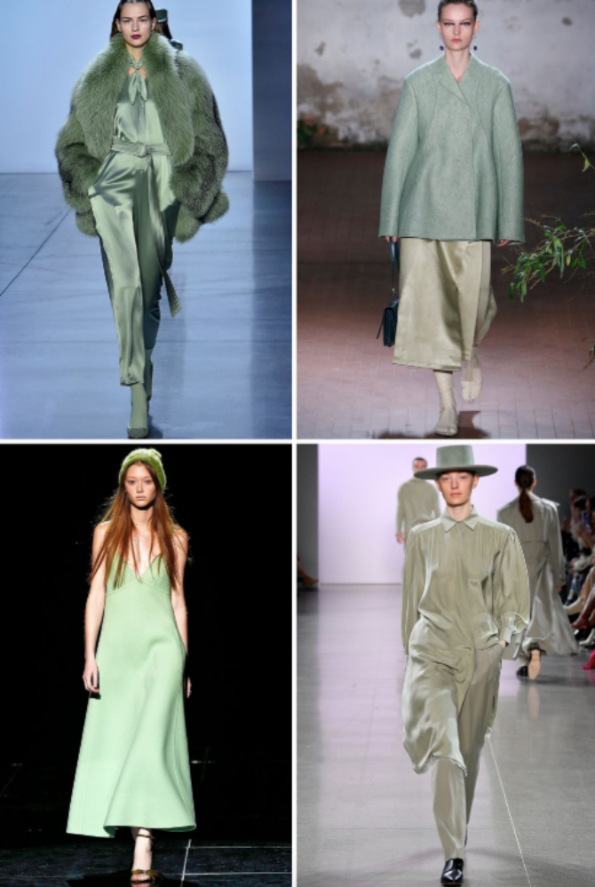 Pistachio green adalah warna hijau kekuningan. Muncul di beberapa runway musim gugur 2019, warna ini banyak dikenakan dalam gaya street style. Rona lembut ini terasa segar, terutama untuk musim gugur/musim dingin. Tak hanya untuk busana, tetapi aksesori dengan warna ini juga terlihat imut.