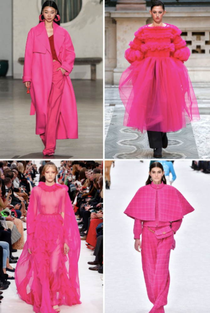 Jangan takut mengenakan warna shocking pink. Hidupkan palet warna hitam, coklat, dan abu-abu akan lebih bagus dengan warna shocking pink. Cobalah mengintip koleksi label Jacquemus atau Chanel.