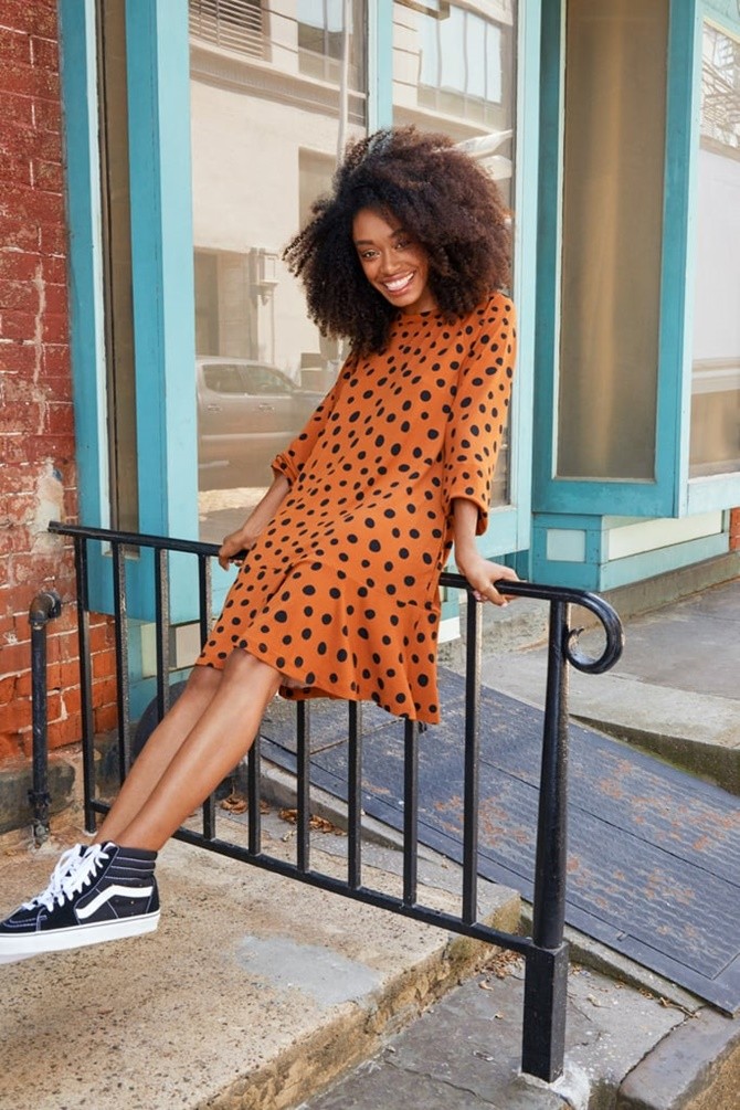 Pilih dress yang flowy saat mengenakan sneakers. (Pop Sugar)