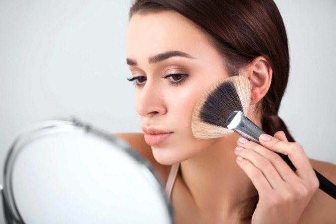 Make-up sehari-hari atau Daily Look hasilnya masih terlihat pori-pori atau tidak terlalu tebal. Bisa menggunakan foundation saja, bedak tabur saja, atau BB cream saja.