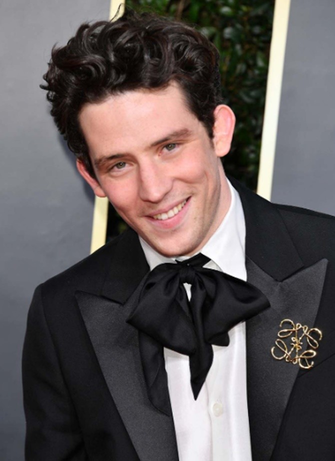 Aktor Josh O'Connor, juga, menghiasi jasnya dengan bros emas. Dia juga mengenakan dasi pita dengan setelan jas hitam yang membuatnya terlihat tampan.
