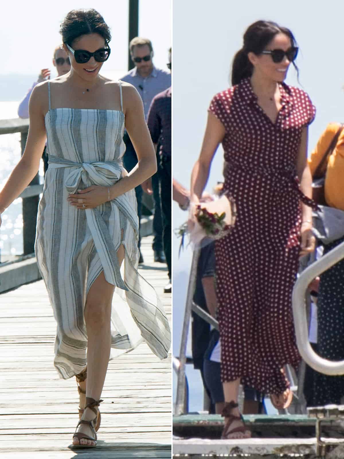 Meghan Markle mengenalan sandal gladiator. (REX/SHUTTERSTOCK; SPLASH NEWS)