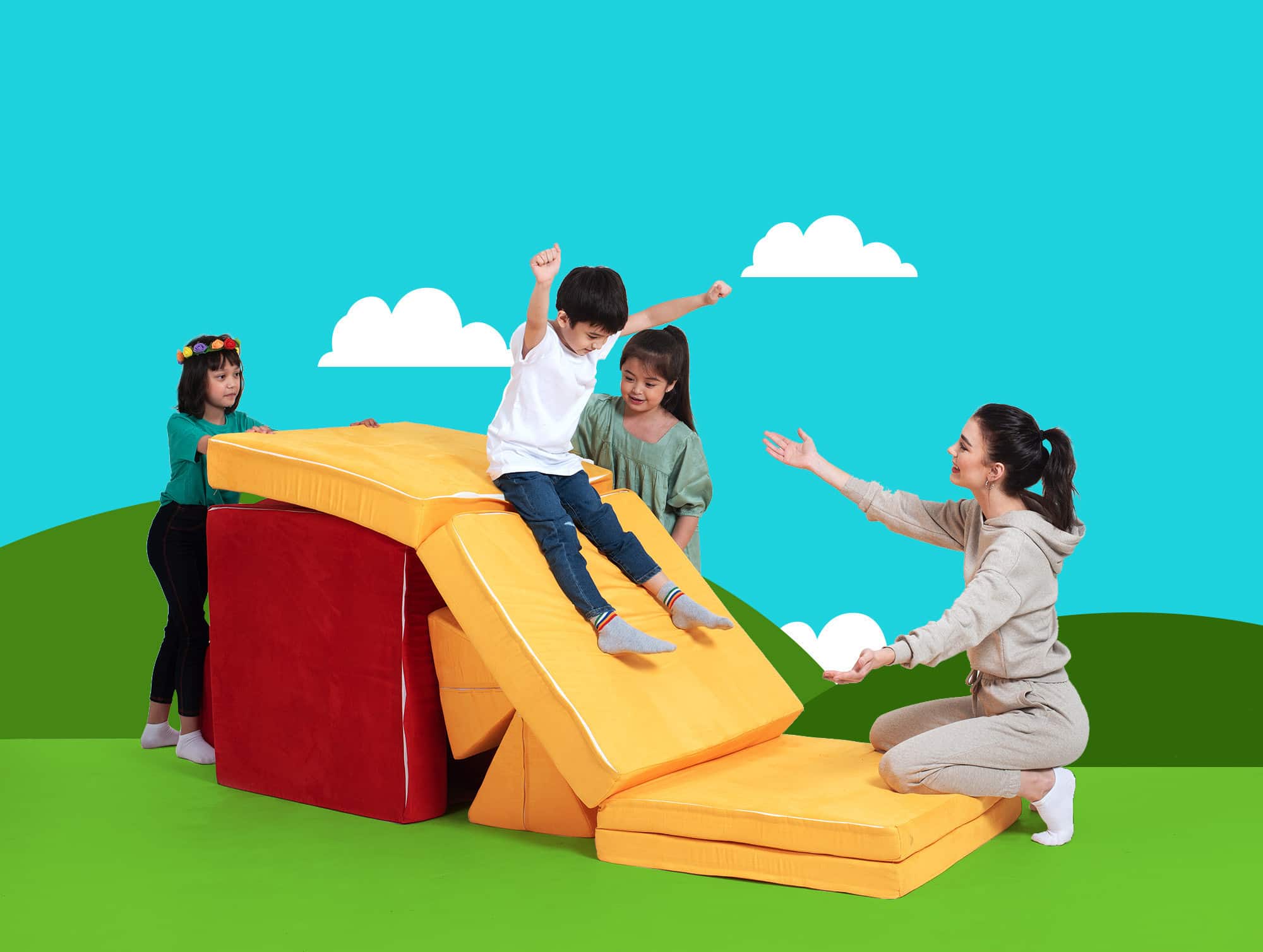 "Anak akan dilatih kreativitasnya untuk menyusun pillow menjadi bentuk sesuai dengan imajinasinya. Sehingga melatih otot dan keseimbangan pada tubuh anak,” jelas Indra.