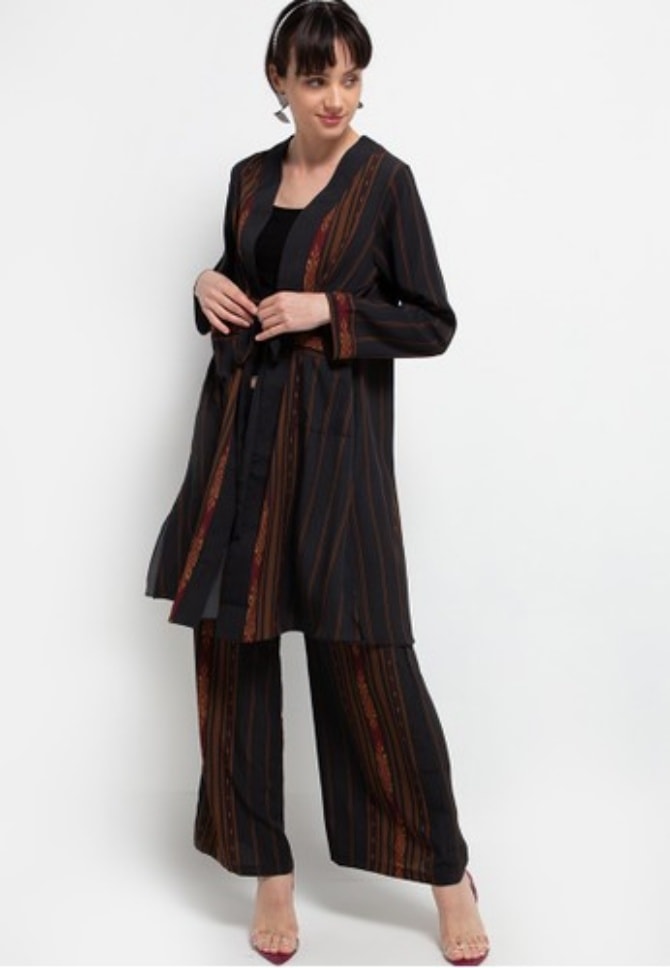bermotif tenun untuk modern ethnic look. Setelan ini memiliki motif tenun etnik yang modis dan simple, sangat cocok digunakan untuk perayaan hari raya di rumah.