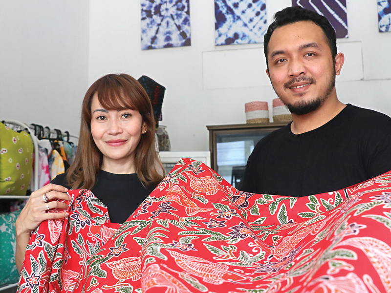 KOMPAK: santika dan Yogi selalu membuat motif batik yang punya makna filosofis sekaligus identik dengan Blitar. (NUR FRIZAL/JAWA POS)