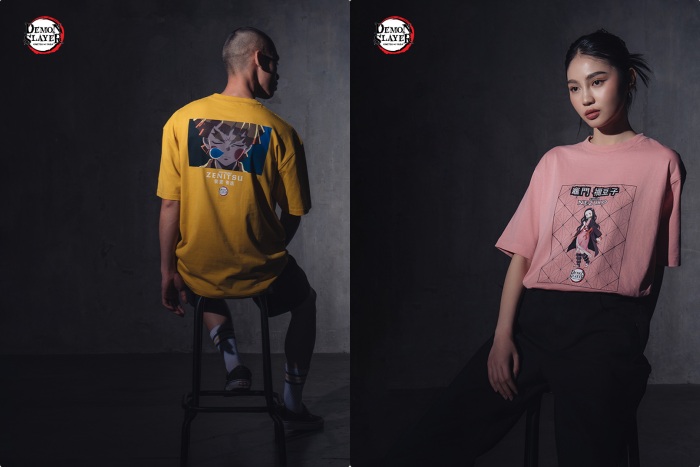 Hadir dalam ragam warna, elemen anime Demon Slayer hadir pada bagian depan dan belakang kaos. Sedangkan pada kemeja, hadir dalam motif kota, yang didalamnya termuat anime Demon Slayer.