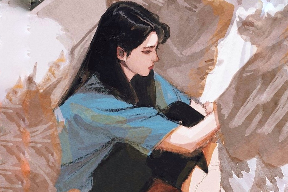 Ilustrasi seorang perempuan yang merasa murung sambil memeluk lutut.(Pinterest/Dona)