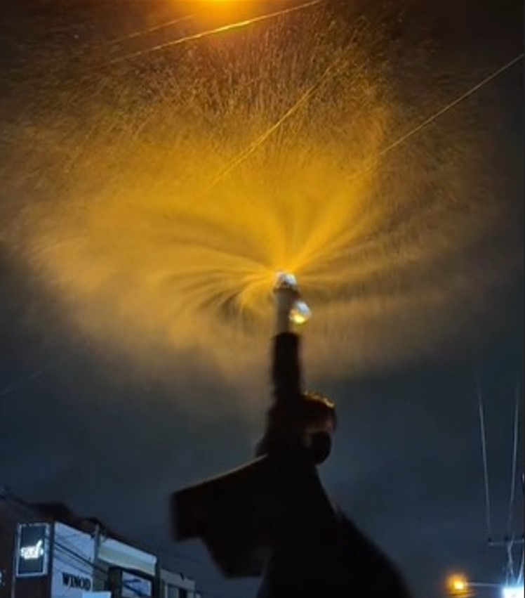 Konten viral tren air mancur ini akan menjadi semakin estetik, jika dimainkan di bawah sorot lampu terang.