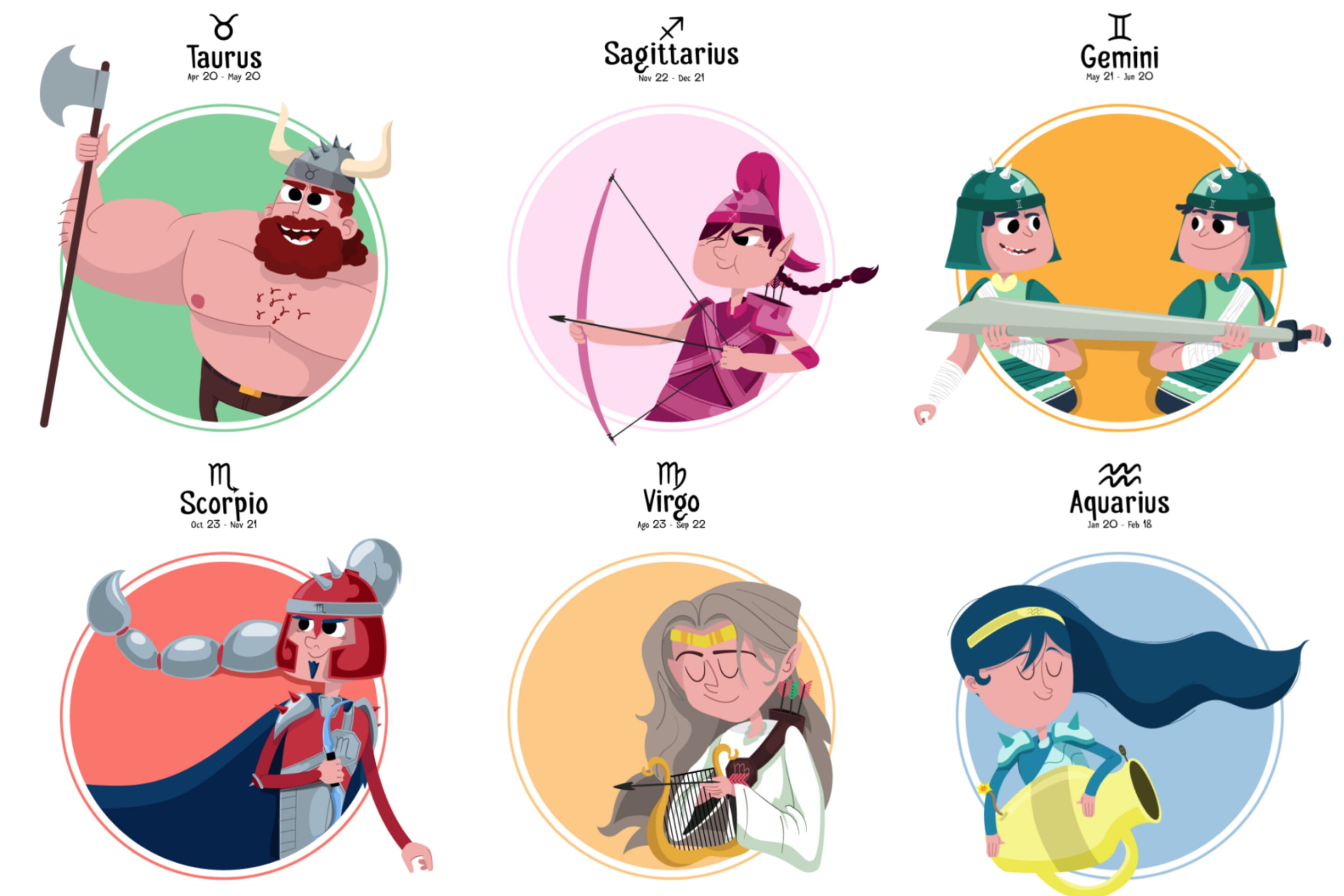 ilustrasi zodiak Taurus, Sagitarius, Gemini, Scorpio, Virgo, dan Aquarius. (freepik)