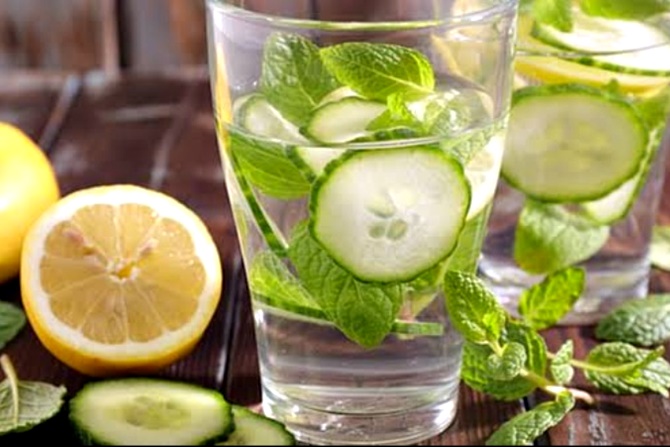 Potong mentimun menjadi irisan tipis dan tambahkan ke dalam tempat minum atau gelas. Tambahkan irisan tipis lemon dan beberapa tangkai mint. Simpan air ini di kulkas semalaman dan konsumsilah keesokan harinya.