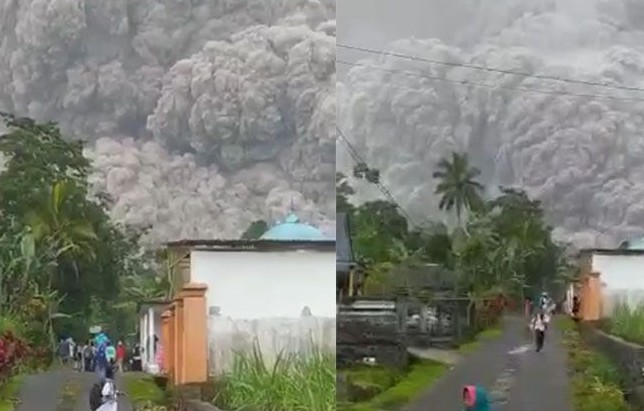 Tangkapan layar sejumlah warga berlarian menghindari awan panas dari erupsi Gunung Semeru di kawasan Pronojiwo, Kabupaten Lumajang, Jawa Timur, Sabtu (4/12). Media sosial warga/Antara