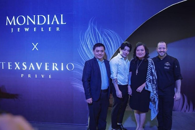 Tex Saverio (kemeja putih) saat meluncurkan koleksi perhiasan yang berkolaborasi dengan Mondial. (Istimewa)