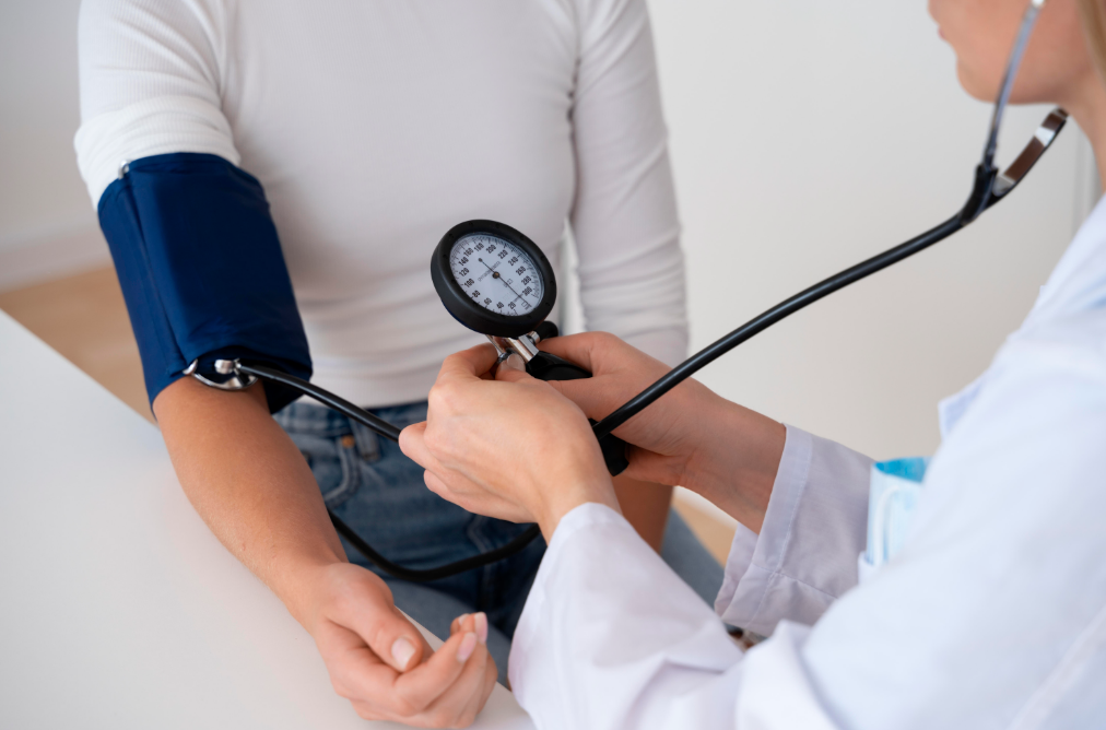 Ilustrasi hipotensi atau hipertensi untuk memeriksa tekanan darah seseorang./ (freepik)