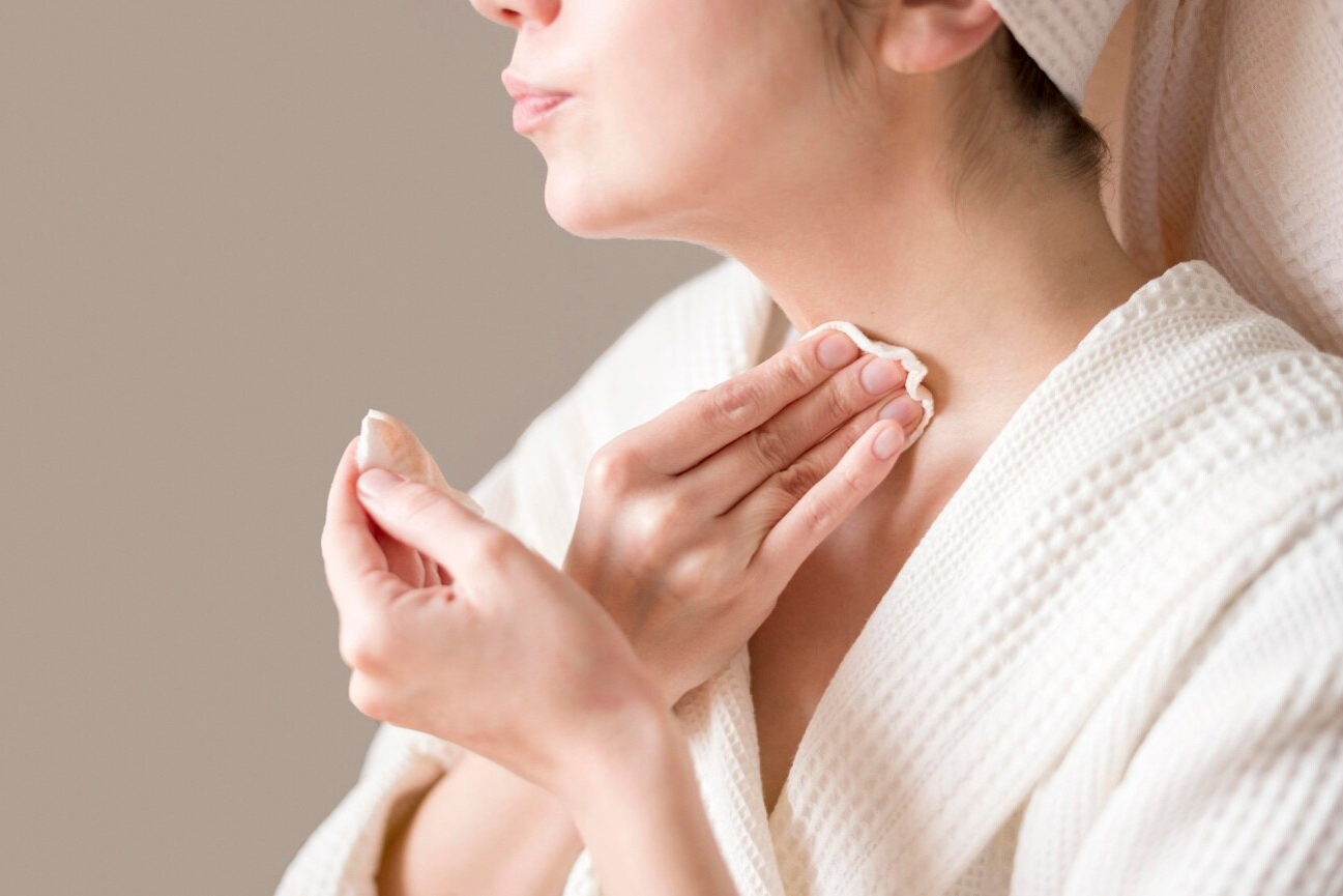 Pijatan ringan di area leher dapat meningkatkan sirkulasi darah dan membantu produk perawatan kulit meresap lebih baik.
