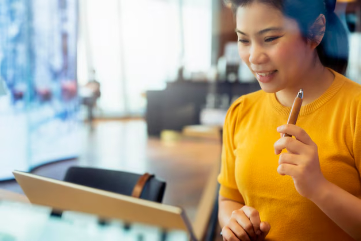 Foto close-up tangan yang sedang memegang pena dan mencatat di atas buku catatan. (Freepik)