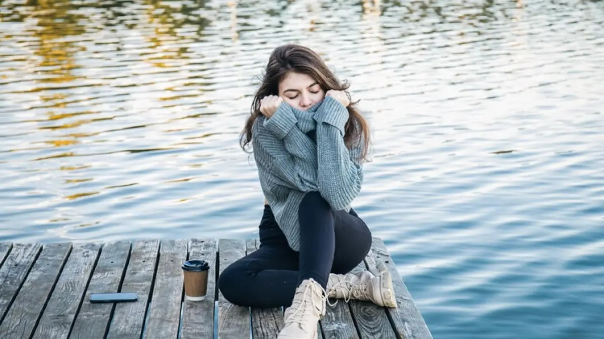 Ilustrasi seseorang tersenyum sambil menikmati secangkir kopi di pagi hari, menggambarkan rasa syukur dan kehadiran penuh dalam momen saat ini. (Freepik)
