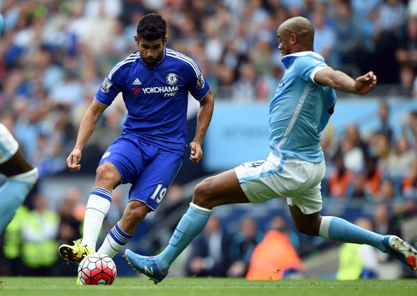 Diego Costa berusaha melewati Vincent Kompany. Foto dok Chelsea