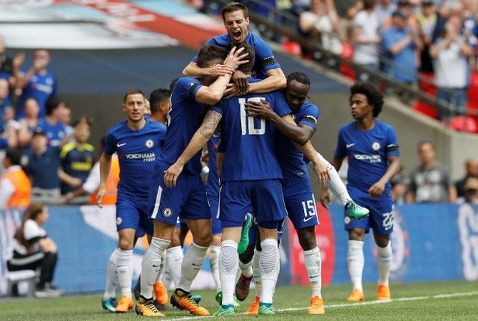 Chelsea: Caballero; Azpilicueta, Rudiger, Cahill; Victor Moses, Fabregas (Pedro 76'), Kante, Emerson; Willian (Bakayoko 64'), Hazard, Giroud (Morata 80').