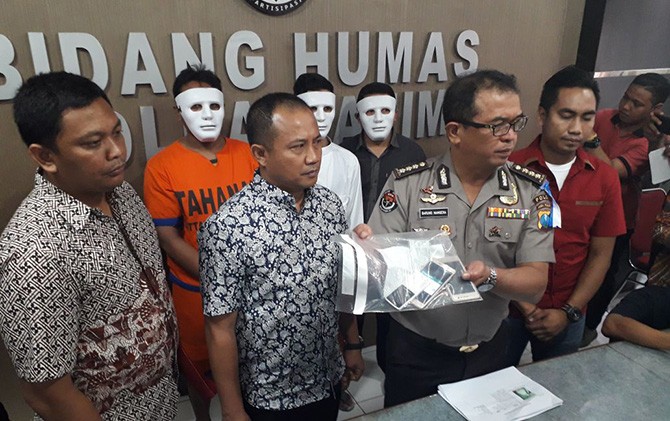 Dalam rilis, Polda Jatim turut memampang keempat tersangka. Adalah MFA alias Abu Wahab, 34, warga Semampir, Surabaya; SFY, 36, warga Besuk Probolinggo; MDR, 40, warga Sumenep; JZR, 22, warga Sumberpucung, Kabupaten Malang.