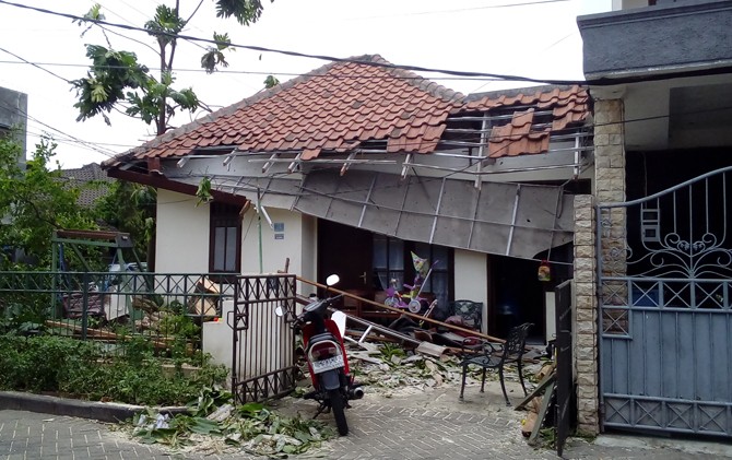 JawaPos.com – Hujan lebat yang disertai angin puting beliung pada Kamis (12/11) menimbulkan kerusakan parah di beberapa lokasi. Salah satunya di Graha Sunan Ampel, Wiyung.