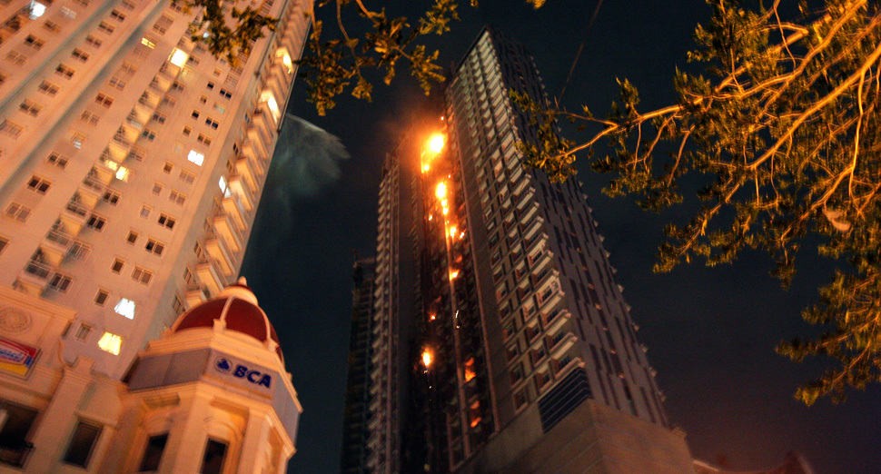 Kebakaran di gedung Neo Soho, Jakarta, Rabu (9/11) malam.