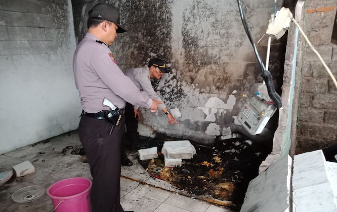 Polisi saat memeriksa TKP di kontrakan Yeni yang dibakar hidup-hidup oleh mantannya.